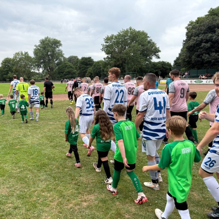 Auch für unsere Kinder aus der Jugend war es ein besonderes Spiel, denn viele der Kinder meldeten sich als Einlaufkinder und konnten so an der Seite von Orsoyer oder Duisburger Kickern auf den Platz laufen, begleitet vom Applaus zahlreicher Zuschauer.